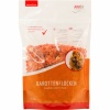 Wie bei Pop-corn wurden die Karotten in einer Art Schnellkochtopfverfahren für ein paar Sekunden behandelt, damit die Stärke aufgeschlossen ist und die Karotten von den Hunden gut verdaut werden können.